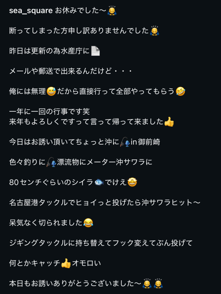 SEA SQUARE NAGOYA【シースクエア名古屋】 > 釣果情報 > お知らせ > お休みでした〜