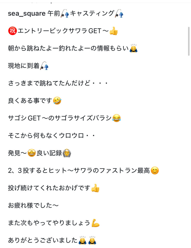 SEA SQUARE NAGOYA【シースクエア名古屋】 > 釣果情報 > お知らせ > 午前キャスティング 釣果情報 お知らせ|2025.09.28 午前キャスティング 午前キャスティング🎣 釣果情報一覧に戻る