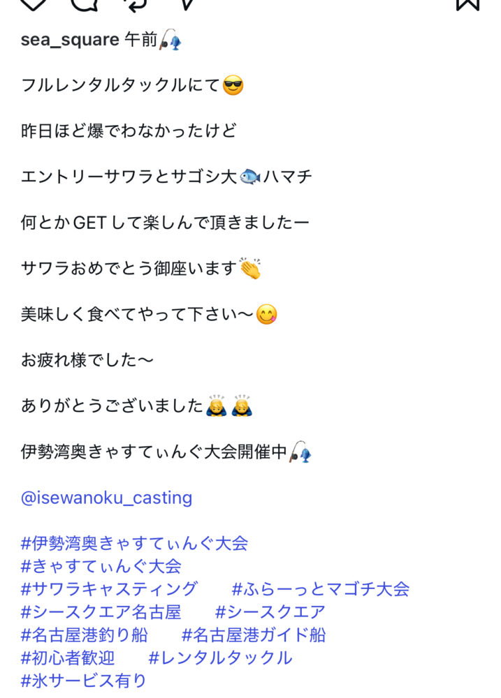 SEA SQUARE NAGOYA【シースクエア名古屋】 > 釣果情報 > お知らせ > 午前サワラGET