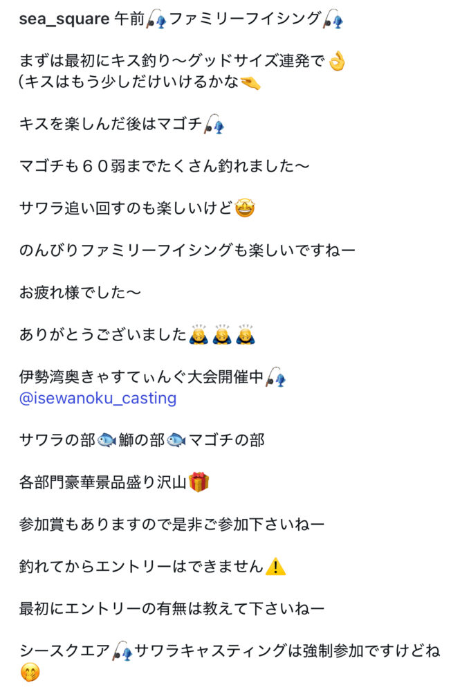 SEA SQUARE NAGOYA【シースクエア名古屋】 > 釣果情報 > お知らせ > 午前ファミリーフイシング 釣果情報 お知らせ|2025.10.12 午前ファミリーフイシング 釣果情報一覧に戻る
