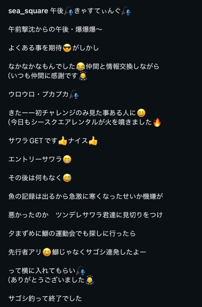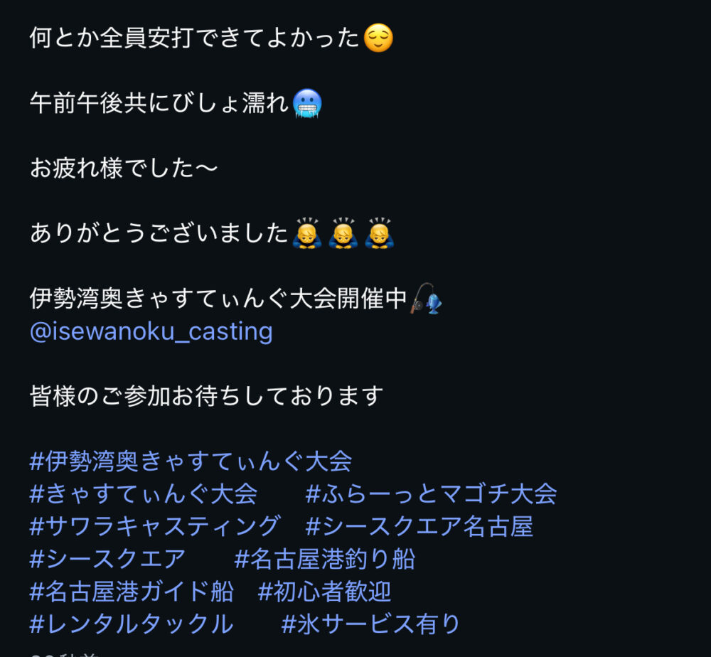 SEA SQUARE NAGOYA【シースクエア名古屋】 > 釣果情報 > お知らせ > 午後サワラGETです 釣果情報 お知らせ|2025.10.21 午後サワラGETです 午後きゃすてぃんぐ🎣 釣果情報一覧に戻る