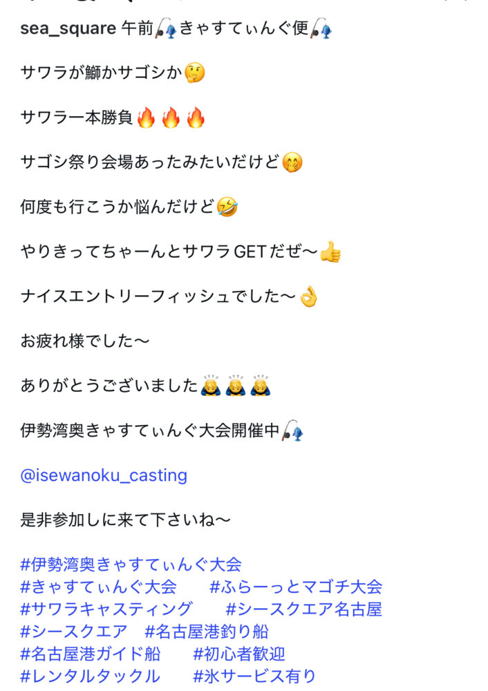 SEA SQUARE NAGOYA【シースクエア名古屋】 > 釣果情報 > お知らせ > 午前サワラGET
