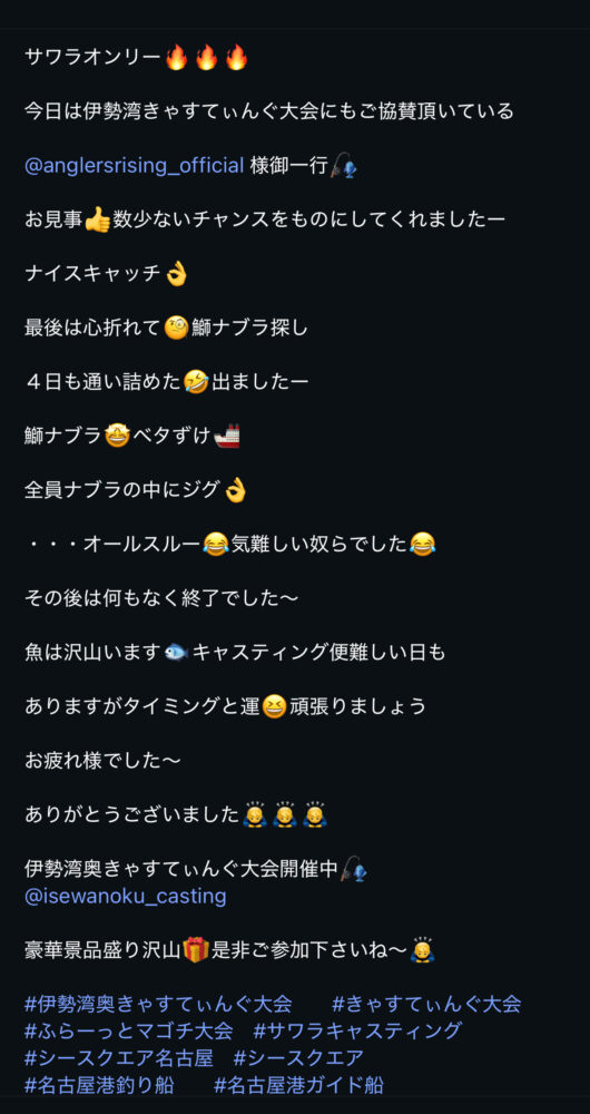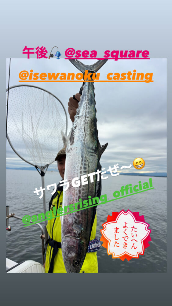 SEA SQUARE NAGOYA【シースクエア名古屋】 > 釣果情報 > お知らせ > 午後もサワラGET 釣果情報 お知らせ|2025.10.24 午後もサワラGET 午後きゃすてぃんぐ便🎣 釣果情報一覧に戻る