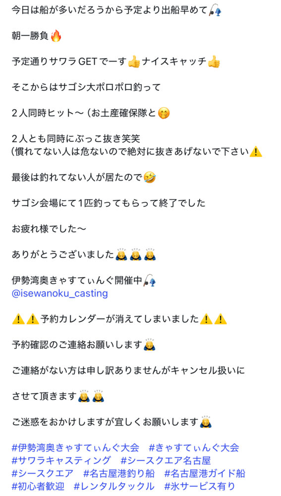 SEA SQUARE NAGOYA【シースクエア名古屋】 > 釣果情報 > お知らせ > 午前きゃすてぃんぐ 釣果情報 お知らせ|2025.10.25 午前きゃすてぃんぐ 午前🎣きゃすてぃんぐ便 釣果情報一覧に戻る