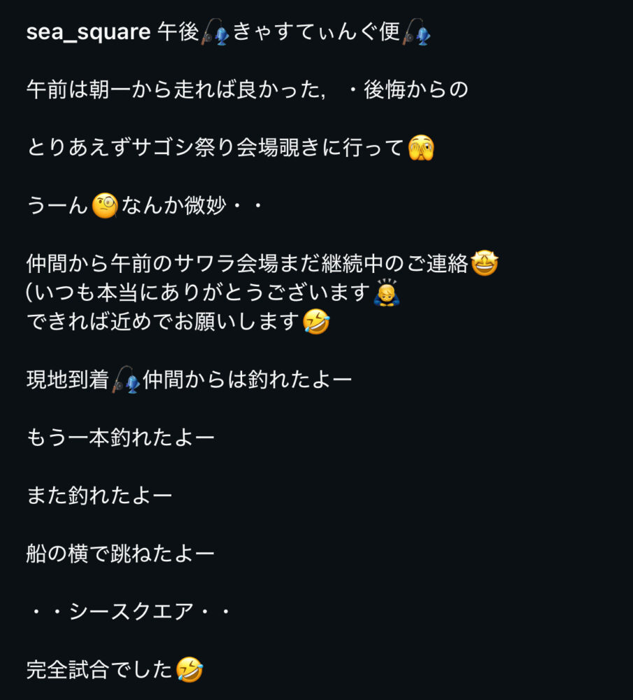 SEA SQUARE NAGOYA【シースクエア名古屋】 > 釣果情報 > お知らせ > 午後撃沈