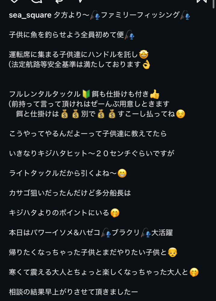 SEA SQUARE NAGOYA【シースクエア名古屋】 > 釣果情報 > お知らせ > 夕方ファミリーフィッシング 釣果情報 お知らせ|2025.10.29 夕方ファミリーフィッシング 釣果情報一覧に戻る