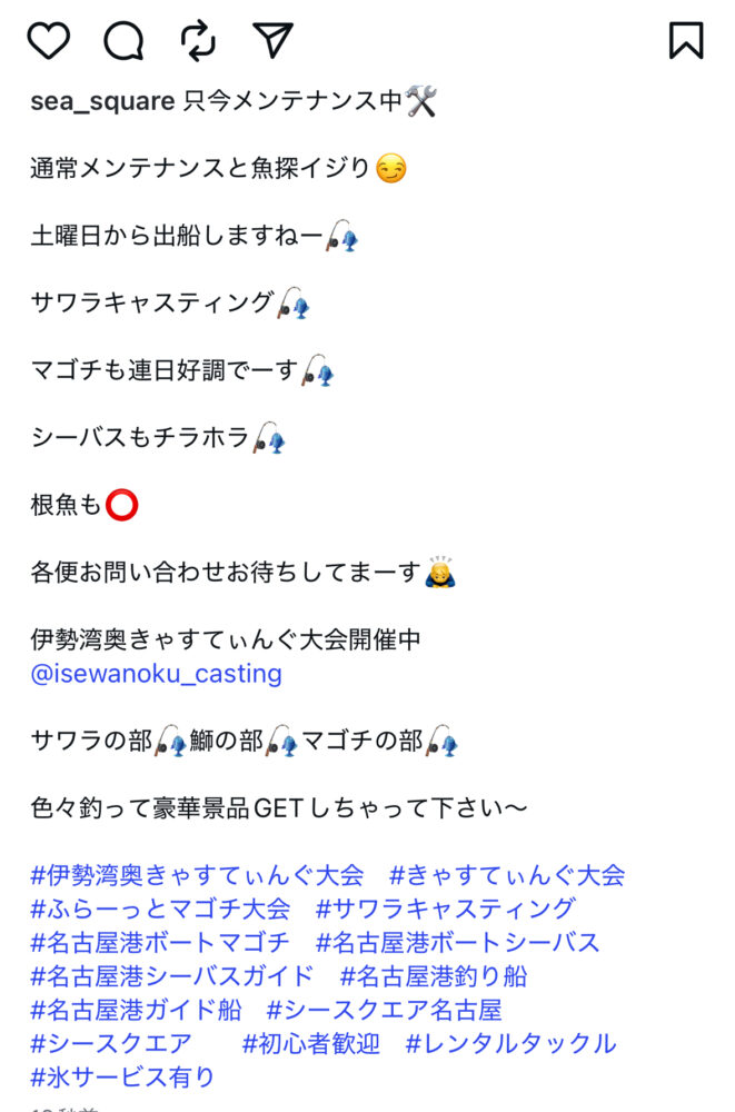 SEA SQUARE NAGOYA【シースクエア名古屋】 > 釣果情報 > お知らせ > メンテナンス中