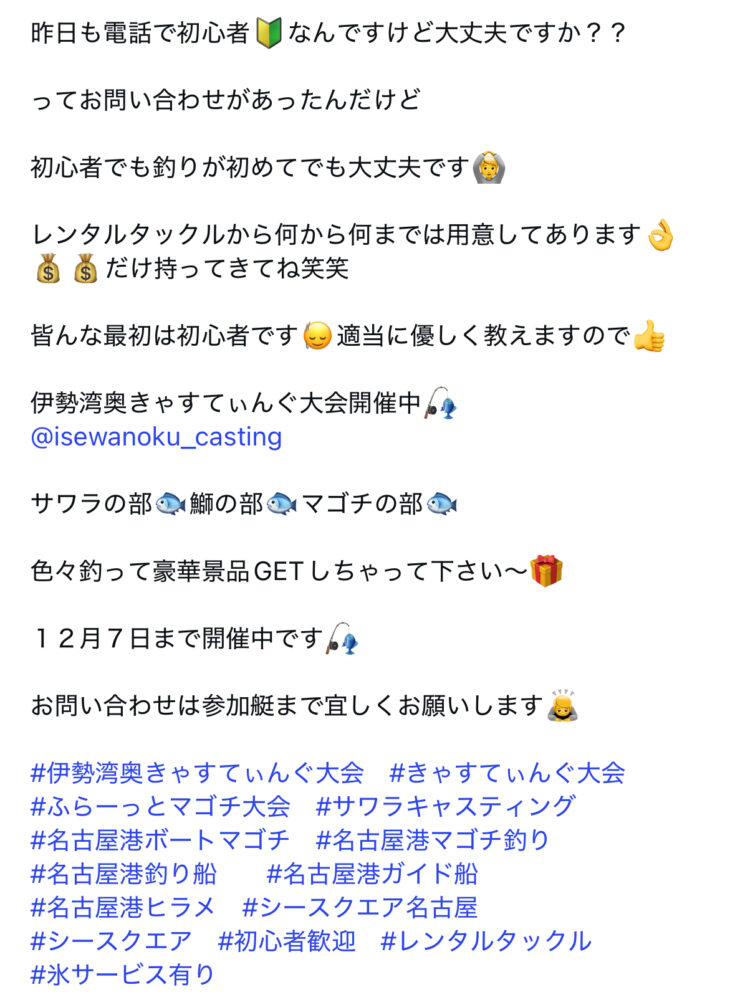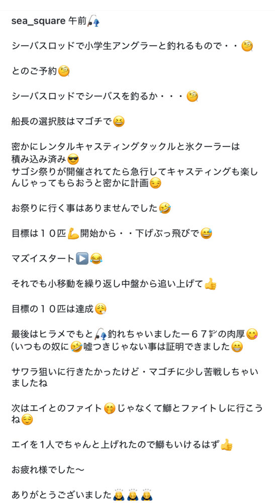 SEA SQUARE NAGOYA【シースクエア名古屋】 > 釣果情報 > お知らせ > 午前マゴチ便