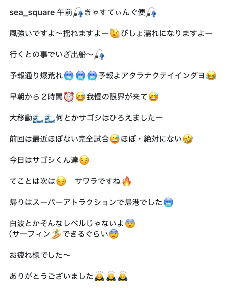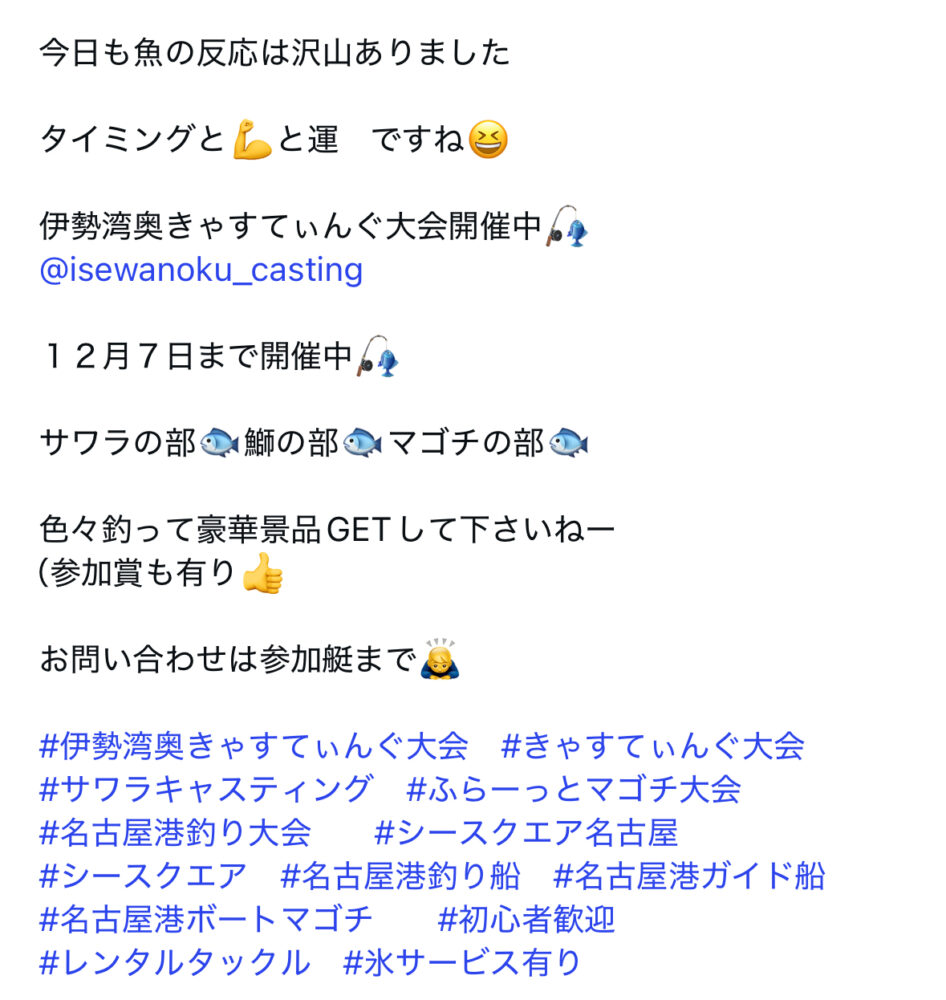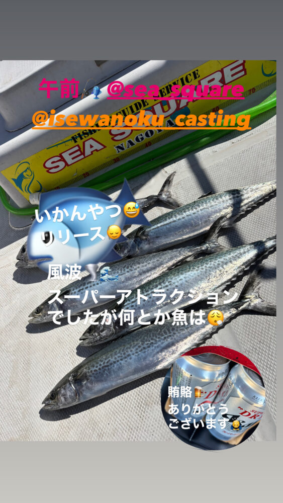 SEA SQUARE NAGOYA【シースクエア名古屋】 > 釣果情報 > お知らせ > 午前きゃすてぃんぐ便 釣果情報 お知らせ|2025.11.03 午前きゃすてぃんぐ便 午前🎣 釣果情報一覧に戻る