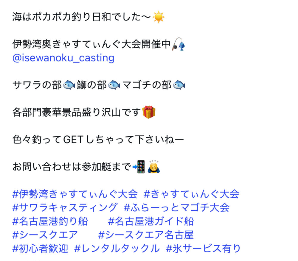 SEA SQUARE NAGOYA【シースクエア名古屋】 > 釣果情報 > お知らせ > キャスティング便