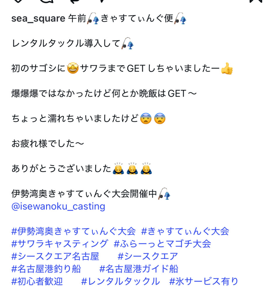 SEA SQUARE NAGOYA【シースクエア名古屋】 > 釣果情報 > お知らせ > 午前サワラ便