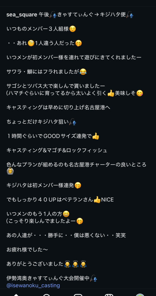 SEA SQUARE NAGOYA【シースクエア名古屋】 > 釣果情報 > お知らせ > 午後キャスティング&キジハタ便 釣果情報 お知らせ|2025.11.17 午後キャスティング&キジハタ便 午後🎣 釣果情報一覧に戻る