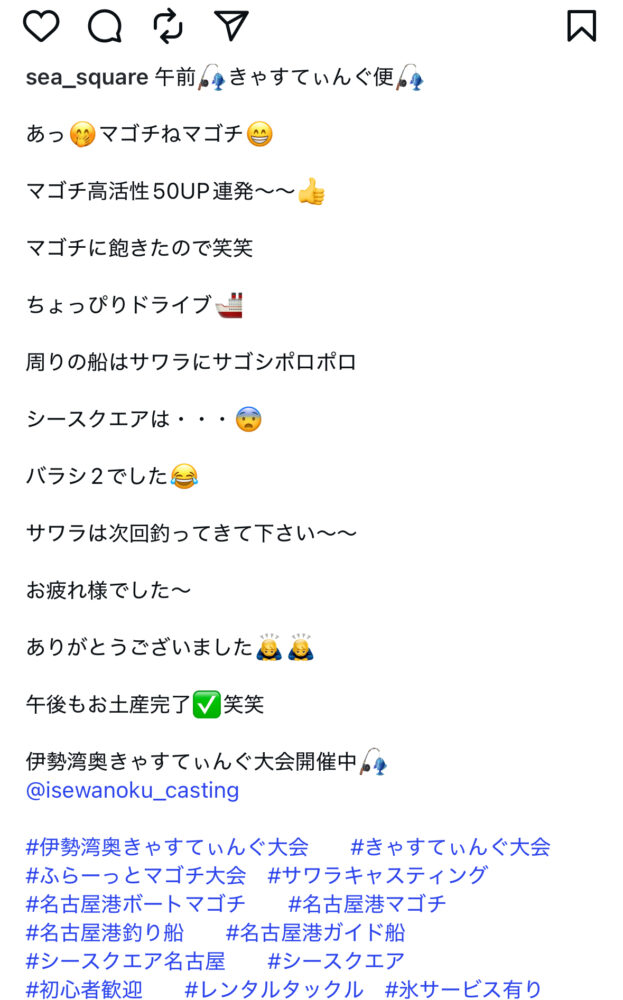 SEA SQUARE NAGOYA【シースクエア名古屋】 > 釣果情報 > お知らせ > 午前