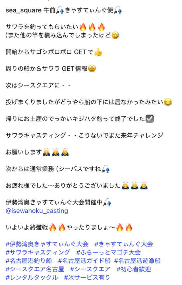 SEA SQUARE NAGOYA【シースクエア名古屋】 > 釣果情報 > お知らせ > 午前きゃすてぃんぐ便 釣果情報 お知らせ|2025.11.24 午前きゃすてぃんぐ便 午前🎣 釣果情報一覧に戻る