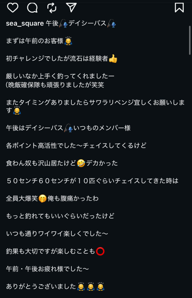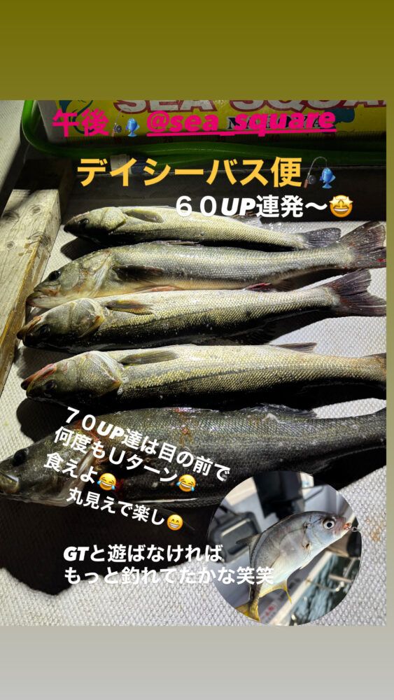 SEA SQUARE NAGOYA【シースクエア名古屋】 > 釣果情報 > お知らせ > 午後シーバス便