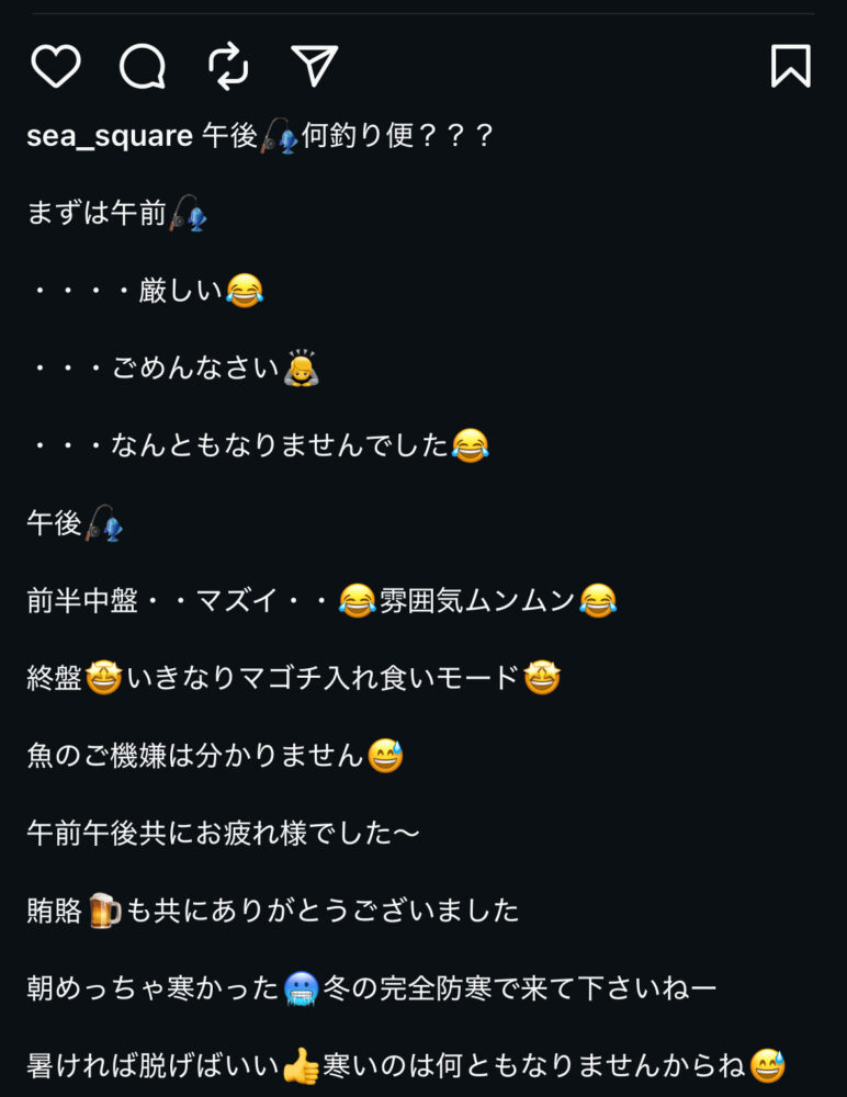 SEA SQUARE NAGOYA【シースクエア名古屋】 > 釣果情報 > お知らせ > 午前午後