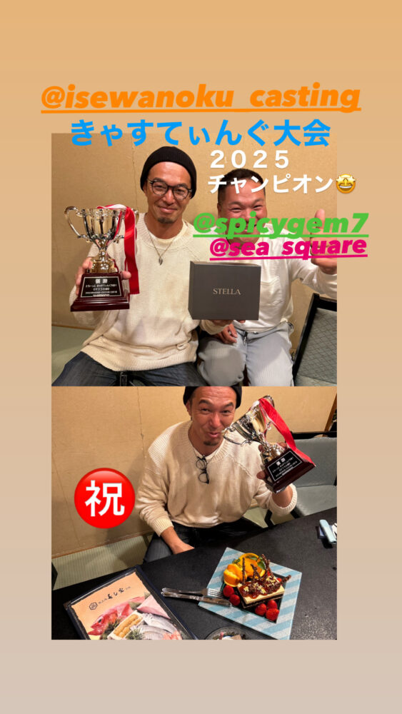 SEA SQUARE NAGOYA【シースクエア名古屋】 > 釣果情報 > お知らせ > きゃすてぃんぐ大会景品 釣果情報 お知らせ|2025.12.24 きゃすてぃんぐ大会景品 時差投稿になります🙇♂️ 釣果情報一覧に戻る