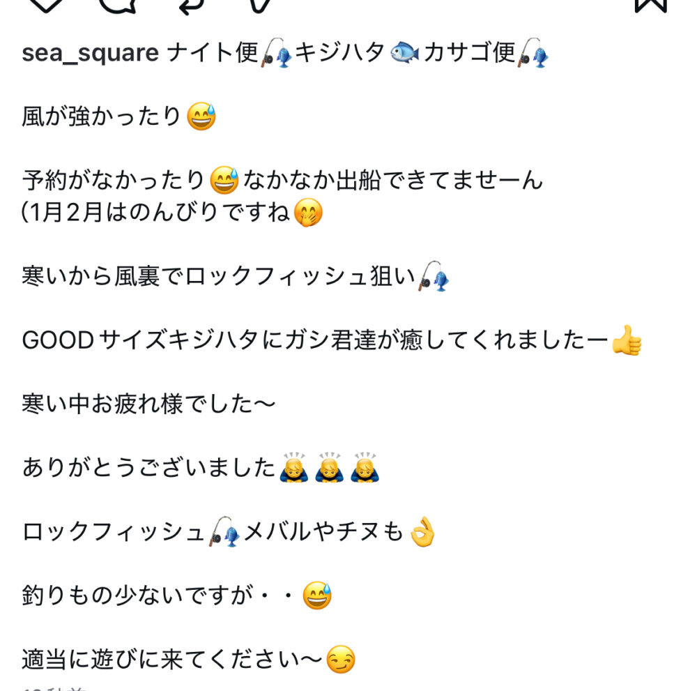SEA SQUARE NAGOYA【シースクエア名古屋】 > 釣果情報 > お知らせ > ナイト便
