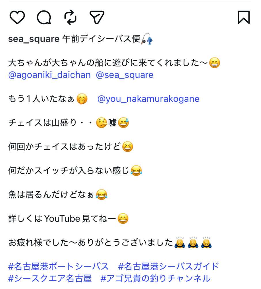SEA SQUARE NAGOYA【シースクエア名古屋】 > 釣果情報 > お知らせ > 午前デイシーバス