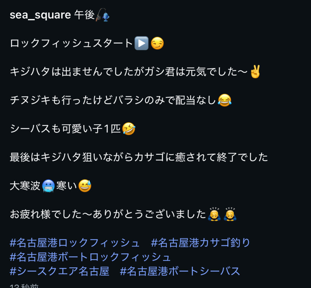 SEA SQUARE NAGOYA【シースクエア名古屋】 > 釣果情報 > お知らせ > 午後便