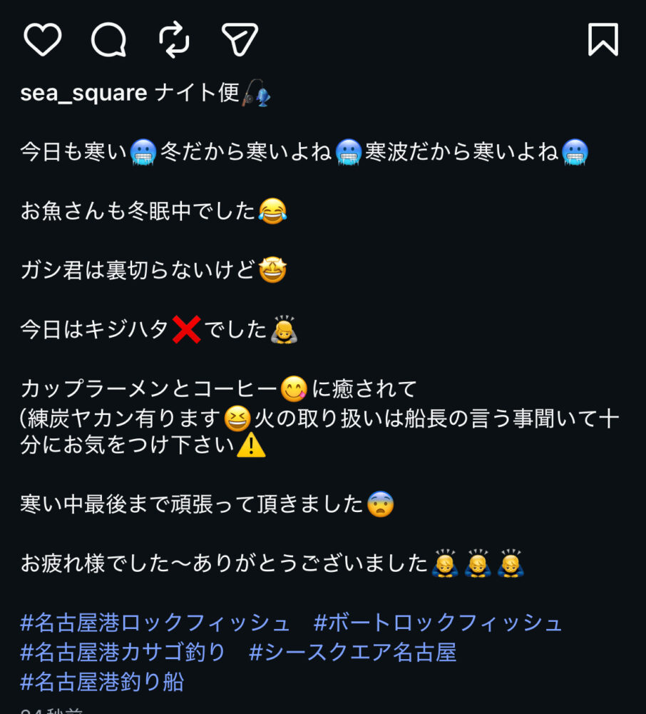 SEA SQUARE NAGOYA【シースクエア名古屋】 > 釣果情報 > お知らせ > カサゴ釣り