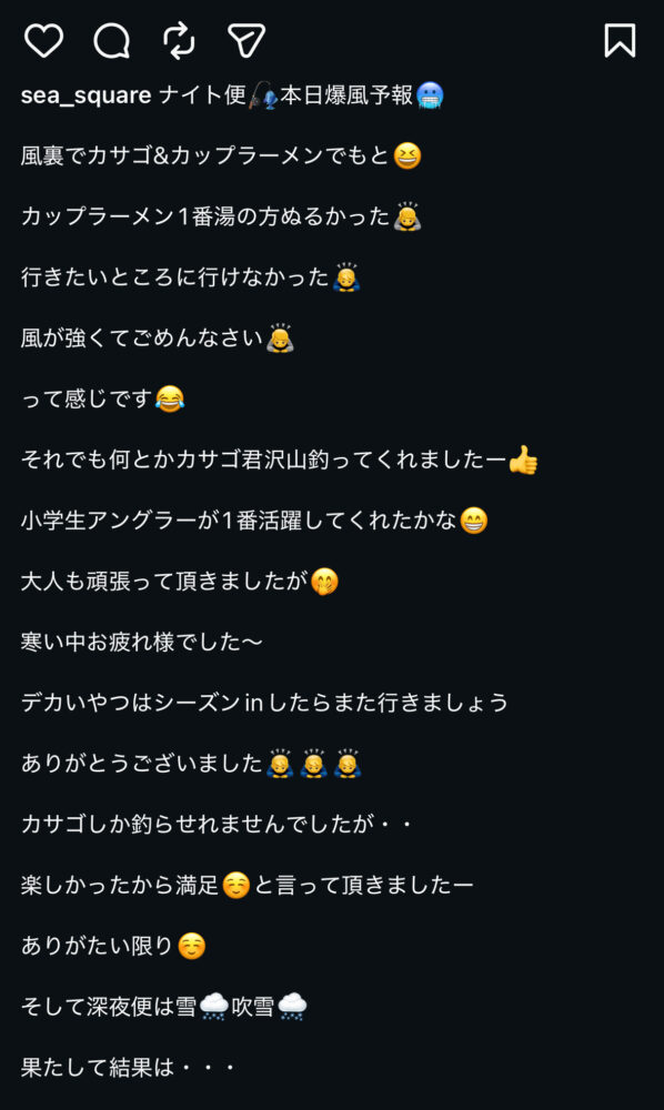 SEA SQUARE NAGOYA【シースクエア名古屋】 > 釣果情報 > お知らせ > ナイト便カサゴ