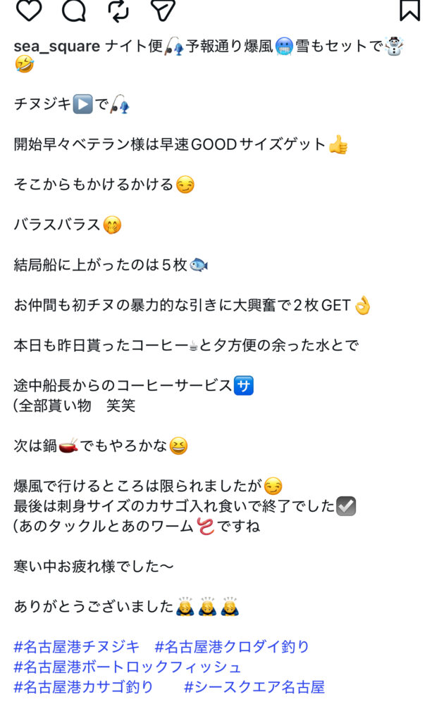 SEA SQUARE NAGOYA【シースクエア名古屋】 > 釣果情報 > お知らせ > 深夜便