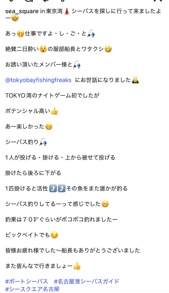 SEA SQUARE NAGOYA【シースクエア名古屋】 > 釣果情報 > お知らせ > in東京湾