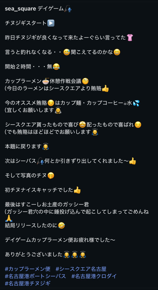 SEA SQUARE NAGOYA【シースクエア名古屋】 > 釣果情報 > お知らせ > デイゲーム