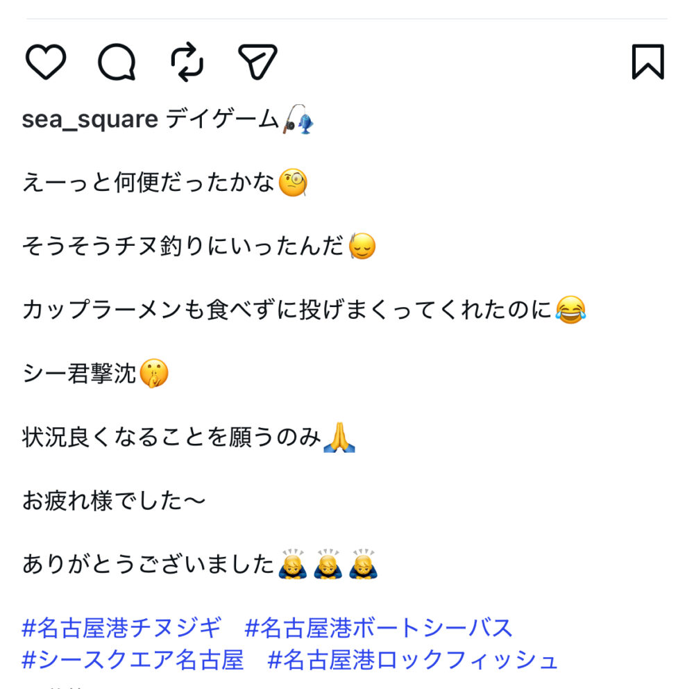 SEA SQUARE NAGOYA【シースクエア名古屋】 > 釣果情報 > お知らせ > デイゲーム