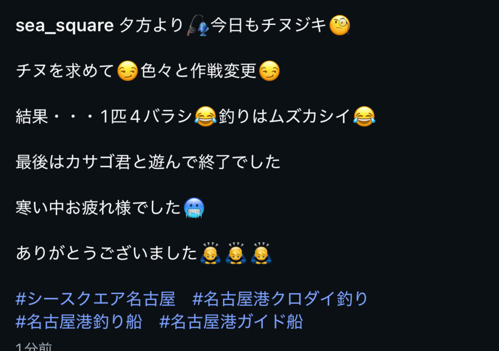 SEA SQUARE NAGOYA【シースクエア名古屋】 > 釣果情報 > お知らせ > 今日もクロダイ
