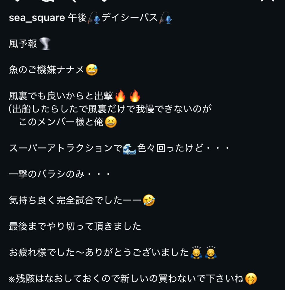 SEA SQUARE NAGOYA【シースクエア名古屋】 > 釣果情報 > お知らせ > 完全試合でした🙇♂️