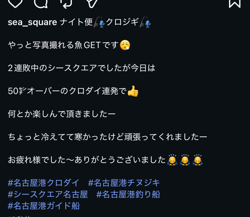 SEA SQUARE NAGOYA【シースクエア名古屋】 > 釣果情報 > お知らせ > ナイト便クロダイ