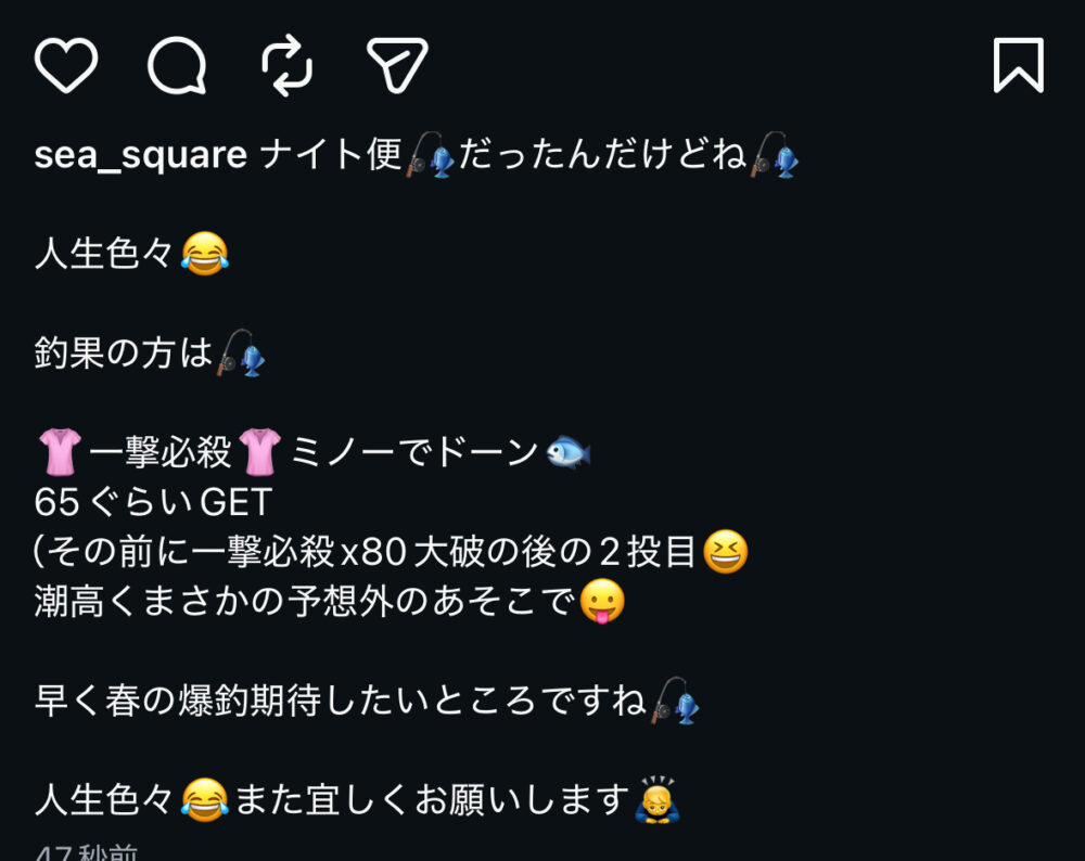 SEA SQUARE NAGOYA【シースクエア名古屋】 > 釣果情報 > お知らせ > ナイト便