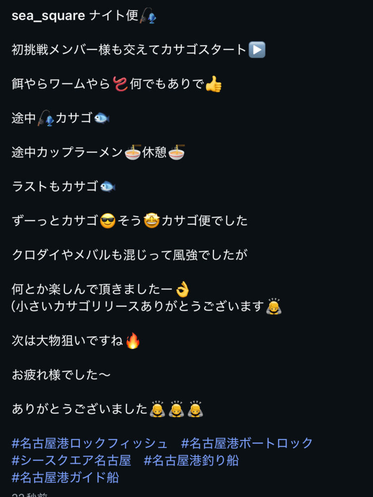 SEA SQUARE NAGOYA【シースクエア名古屋】 > 釣果情報 > お知らせ > ナイト便