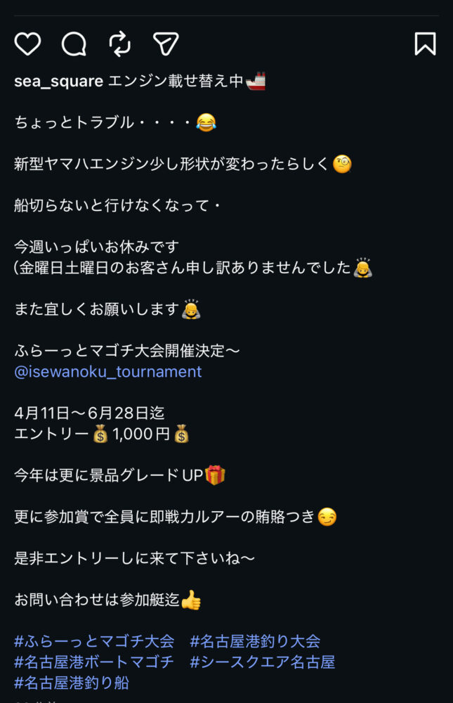 SEA SQUARE NAGOYA【シースクエア名古屋】 > 釣果情報 > お知らせ > 今週末まで