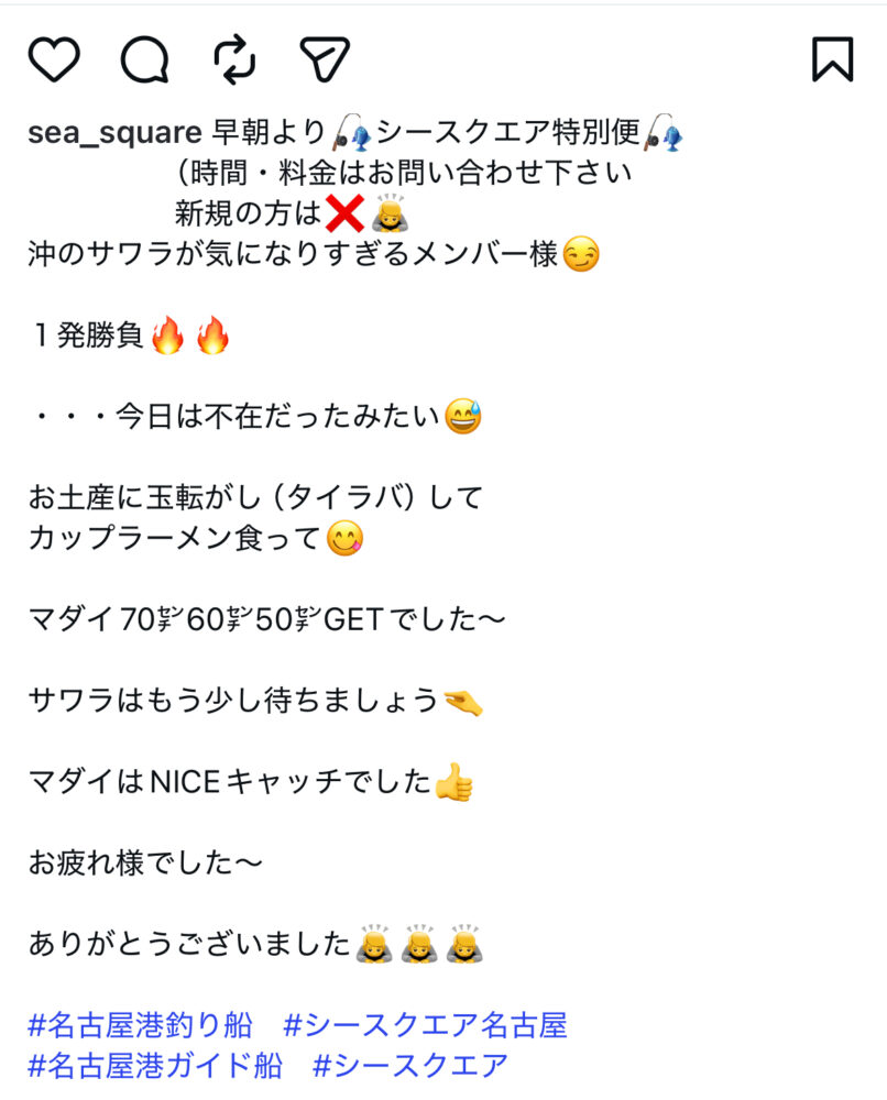 SEA SQUARE NAGOYA【シースクエア名古屋】 > 釣果情報 > お知らせ > 早朝より特別便