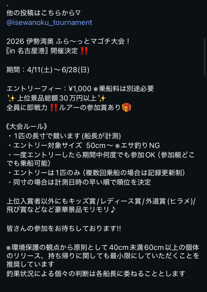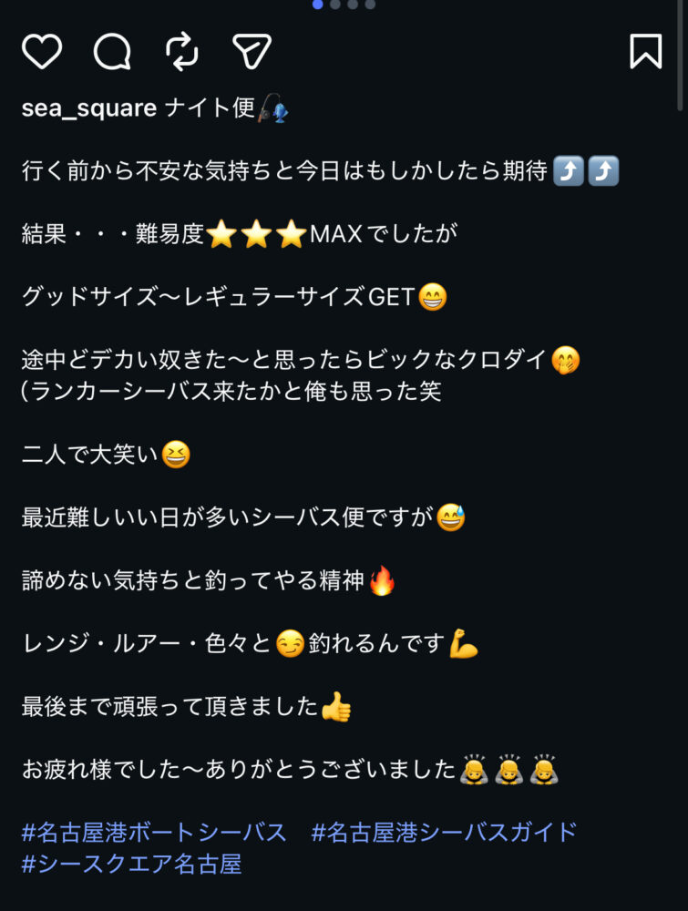 SEA SQUARE NAGOYA【シースクエア名古屋】 > 釣果情報 > お知らせ > ナイト便