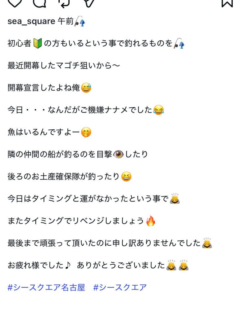 SEA SQUARE NAGOYA【シースクエア名古屋】 > 釣果情報 > お知らせ > 午前便撃沈