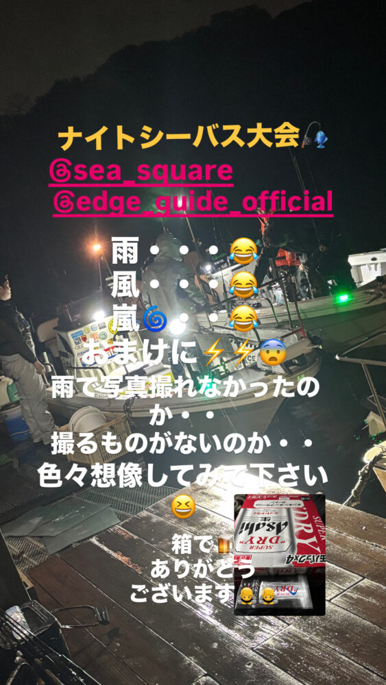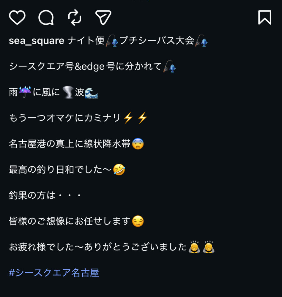 SEA SQUARE NAGOYA【シースクエア名古屋】 > 釣果情報 > お知らせ > ナイト便豪雨
