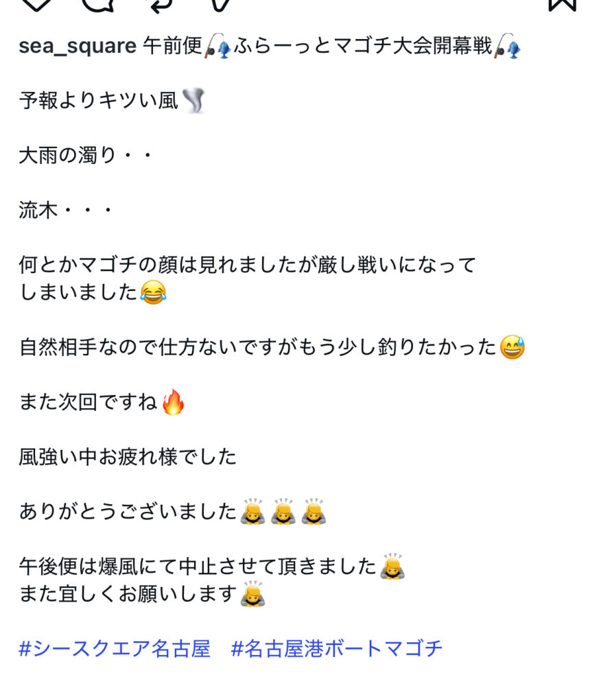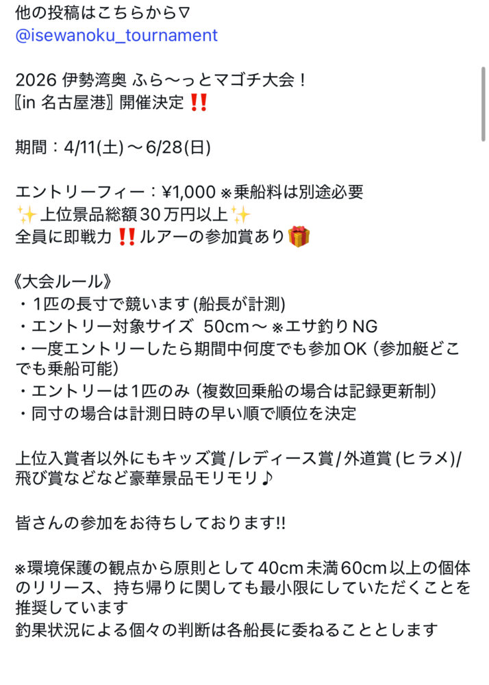 SEA SQUARE NAGOYA【シースクエア名古屋】 > 釣果情報 > お知らせ > 午前便ふらーっとマゴチ開幕 釣果情報 お知らせ|2026.04.11 午前便ふらーっとマゴチ開幕 釣果情報一覧に戻る