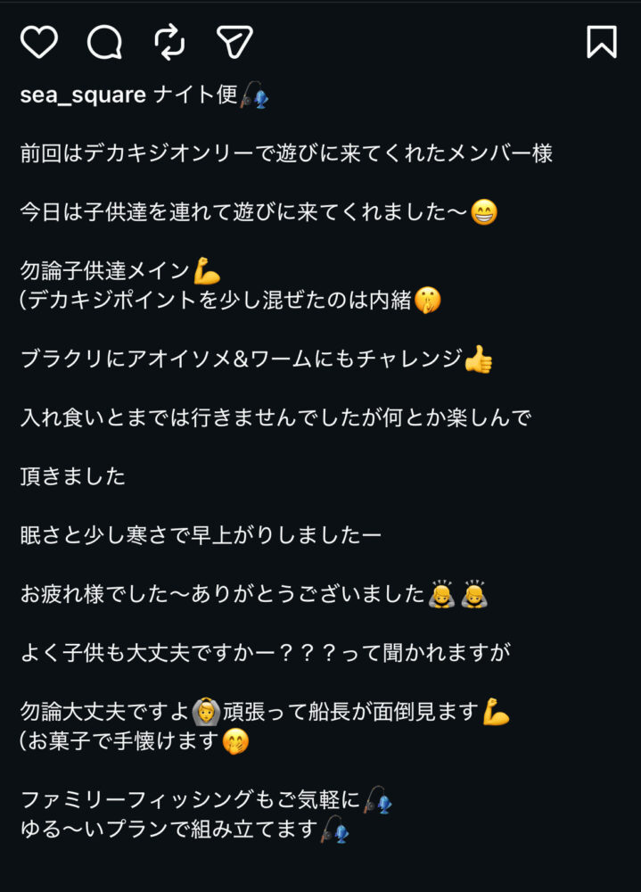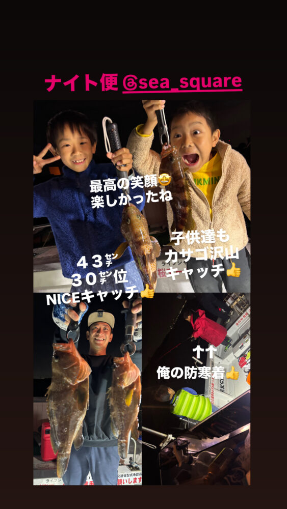 SEA SQUARE NAGOYA【シースクエア名古屋】 > 釣果情報 > お知らせ > ナイト便ファミリーフィッシング 釣果情報 お知らせ|2026.04.19 ナイト便ファミリーフィッシング 釣果情報一覧に戻る