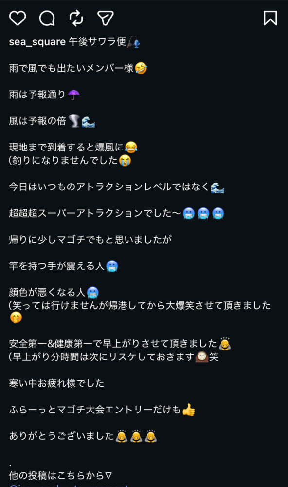 SEA SQUARE NAGOYA【シースクエア名古屋】 > 釣果情報 > お知らせ > 午後便