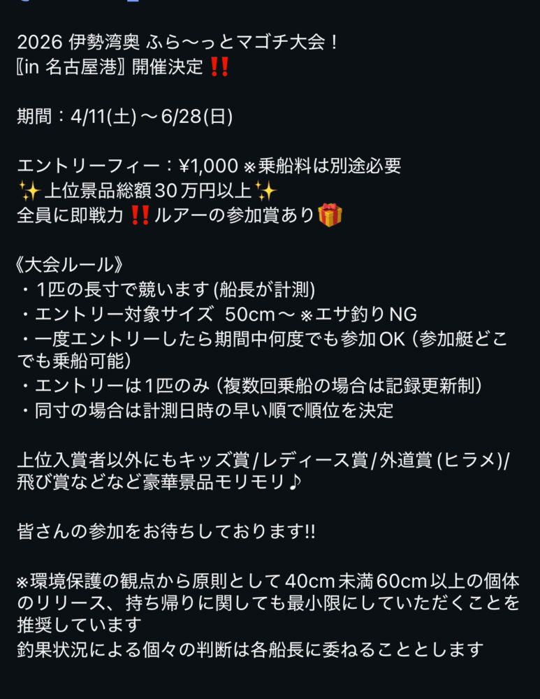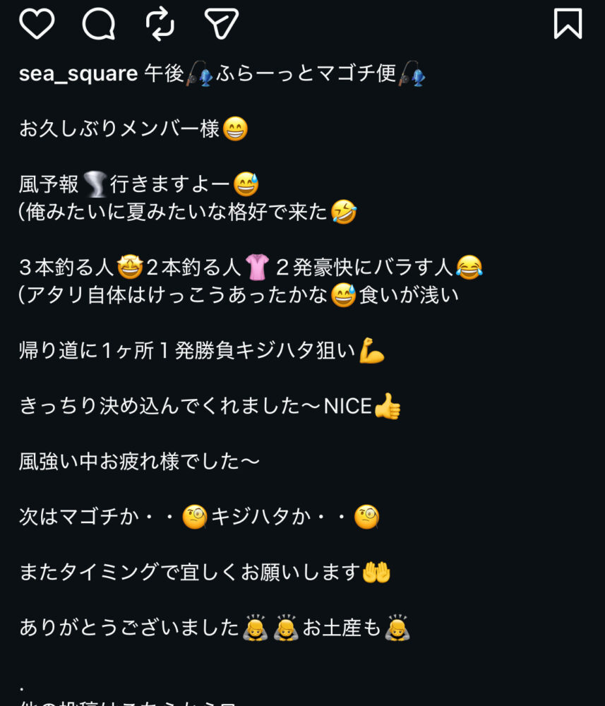 SEA SQUARE NAGOYA【シースクエア名古屋】 > 釣果情報 > お知らせ > 午後マゴチ便